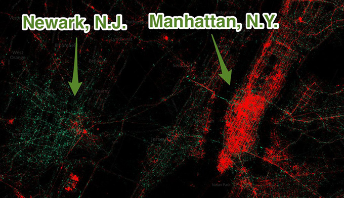As for the data set from this morning, the maps from mapbox.com show that Newark New Jersey is popular with Android while Manhattan is swarming with iPhones. To back the argument, Manhattan has a median income of $67,000 while Newark has a median income of $17,000. Even within New York City the map shows that the more affluent neighborhoods like the West and East Village have three times the amount of iPhones as Chinatown and the lower east side.